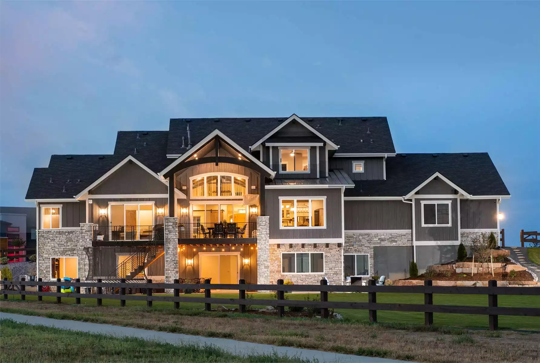 The Crescent Heights house plan is a 3,907 sq. ft. Contemporary Craftsman design that blends natural charm with luxury living. The main floor includes a spacious primary suite with spa-style bath, vaulted great room with fireplace, and a large open kitchen with island seating. A private den offers space for a home office or study. Three additional bedrooms upstairs each include walk-in closets and private or semi-private baths. Expand your living space with an optional 2,052 sq. ft. lower level featuring a walkout layout ideal for entertaining, guest suites, or recreation. With a 3-car garage, expansive porches, and 10' ceilings on the main level, Crescent Heights delivers both comfort and curb appeal.