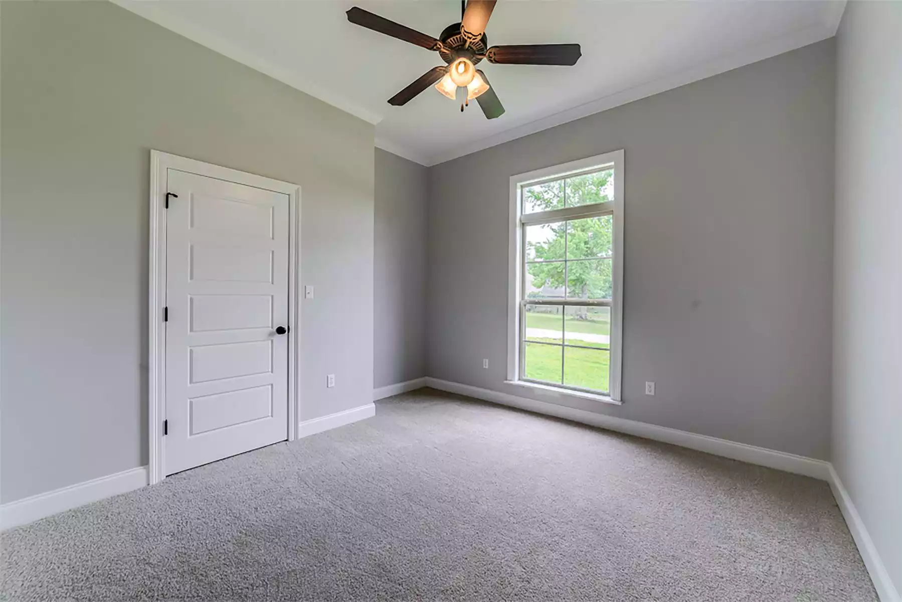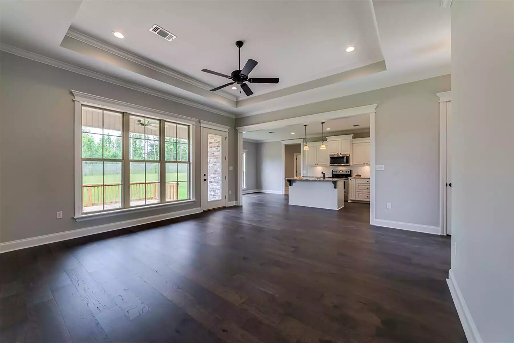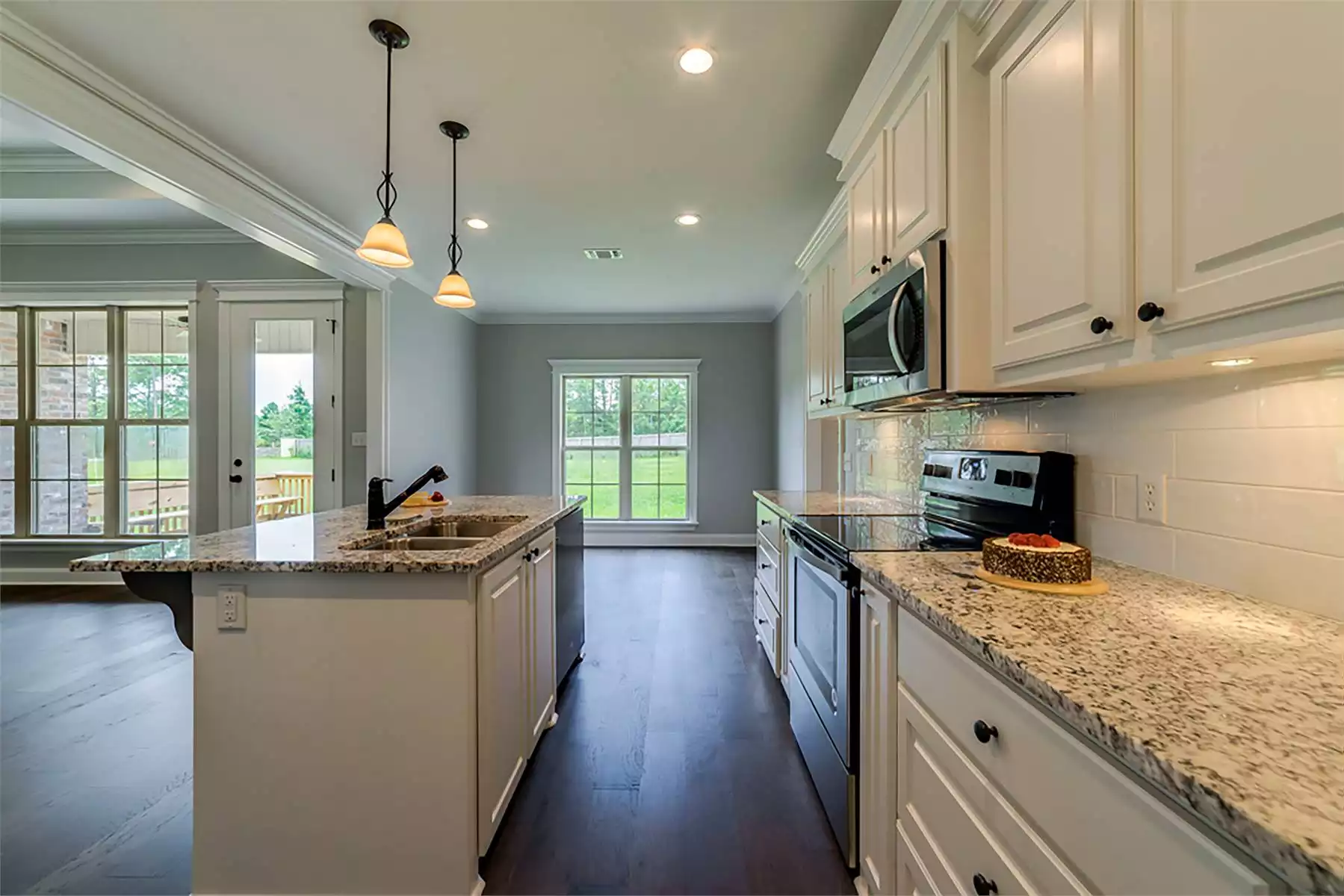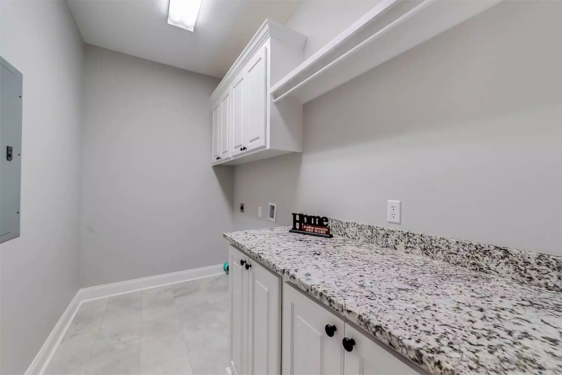 The Porterville house plan is a thoughtfully designed 1,889 sq. ft. country-style home that seamlessly blends comfort with functionality. This single-story layout includes 4 bedrooms and 2 bathrooms, featuring a private primary suite with a luxurious bath and spacious walk-in closet. The heart of the home boasts a generous great room with an 11' tray ceiling and a cozy fireplace, flowing effortlessly into the kitchen and dining area to create an open and inviting living space. The kitchen is equipped with a large island with seating, a walk-in pantry, and ample cabinetry, enhancing its practicality. The split-bedroom design ensures privacy, with three additional bedrooms sharing a well-appointed bathroom on the opposite side of the home. A functional family entry from the garage includes built-in lockers, providing a convenient space to organize daily essentials. With its country charm and efficient layout, the Porterville plan caters to those seeking a stylish yet practical home.