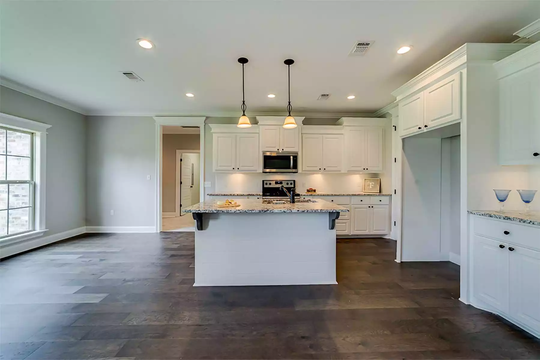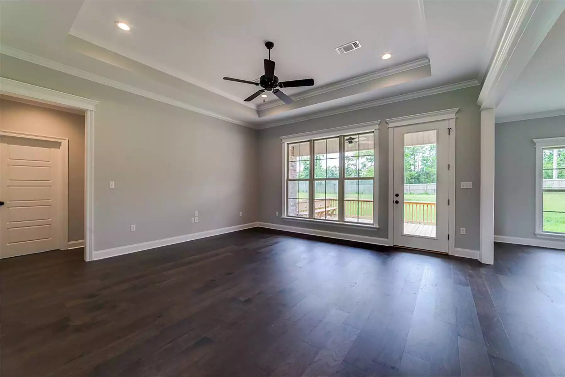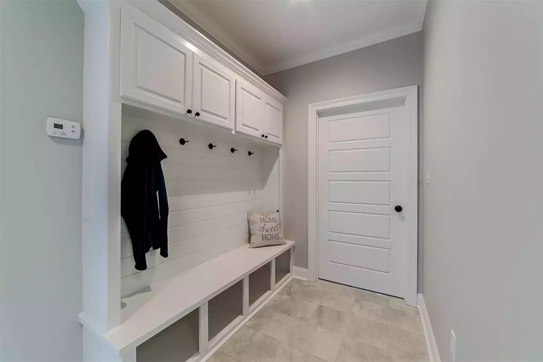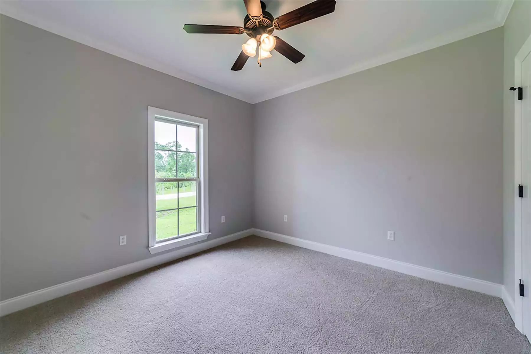 The Porterville house plan is a thoughtfully designed 1,889 sq. ft. country-style home that seamlessly blends comfort with functionality. This single-story layout includes 4 bedrooms and 2 bathrooms, featuring a private primary suite with a luxurious bath and spacious walk-in closet. The heart of the home boasts a generous great room with an 11' tray ceiling and a cozy fireplace, flowing effortlessly into the kitchen and dining area to create an open and inviting living space. The kitchen is equipped with a large island with seating, a walk-in pantry, and ample cabinetry, enhancing its practicality. The split-bedroom design ensures privacy, with three additional bedrooms sharing a well-appointed bathroom on the opposite side of the home. A functional family entry from the garage includes built-in lockers, providing a convenient space to organize daily essentials. With its country charm and efficient layout, the Porterville plan caters to those seeking a stylish yet practical home.