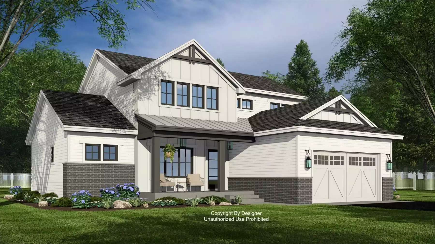 The Harold house plan is a thoughtfully designed 2,417 sq. ft. farmhouse that blends classic charm with modern functionality. This two-story home offers 4 spacious bedrooms and 3.5 bathrooms, including a luxurious primary suite on the main level with a walk-in closet and en-suite bath. The open-concept main floor features a great room with a well-appointed kitchen with a large island and walk-in pantry, and a dining area that opens to the rear porch—perfect for entertaining. Additional highlights include a dedicated home office/study, a mudroom with laundry facilities, and a welcoming front porch. Upstairs, you'll find three additional bedrooms, a versatile loft space, and ample storage. With its covered front and rear porches, the Harold plan offers ample outdoor living space, making it an excellent choice for modern living.