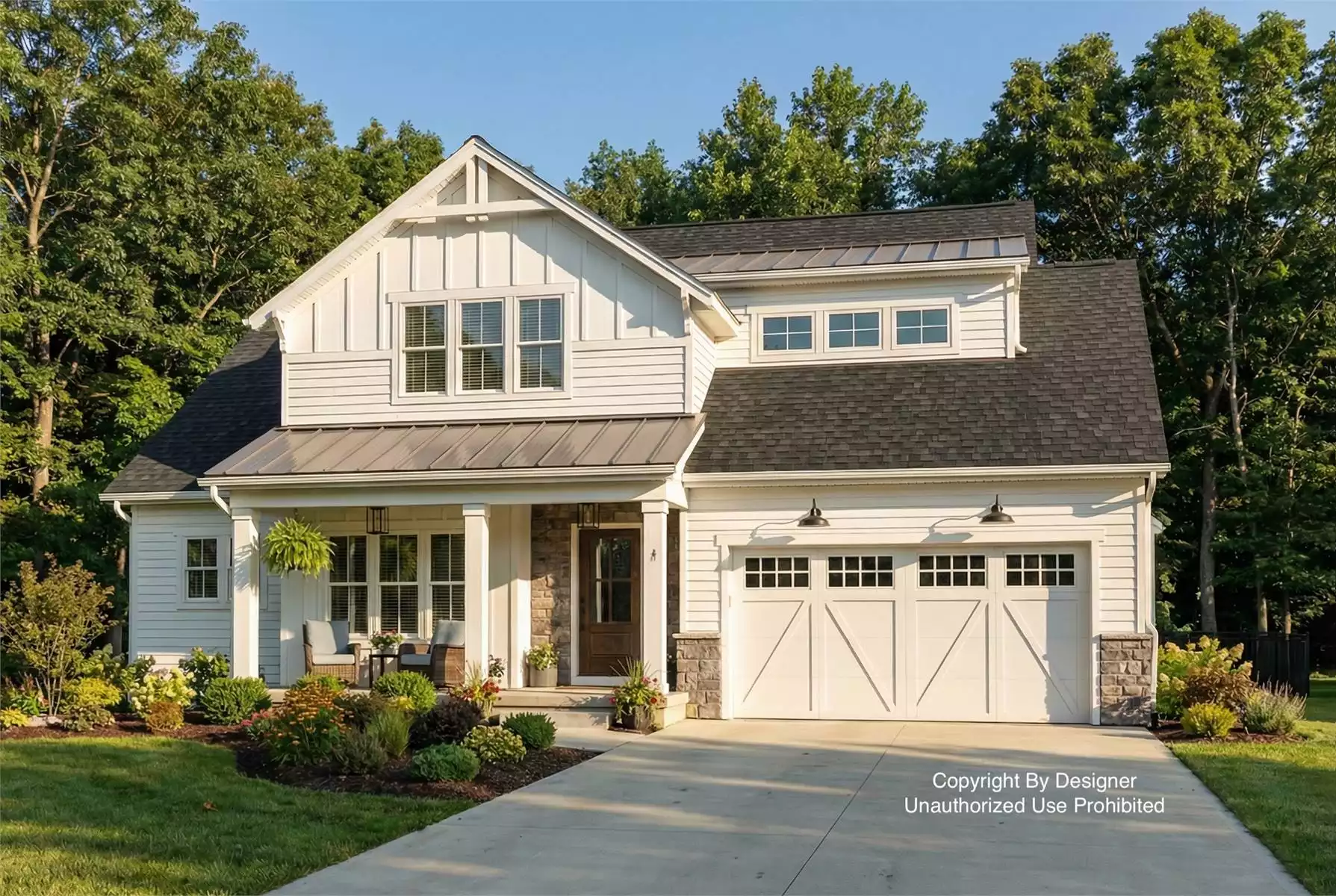 Cedar Bay house plan is a beautifully designed 2,768 sq. ft. farmhouse that combines modern amenities with classic charm. This two-story home offers 4 spacious bedrooms and 3.5 bathrooms, including a convenient Jack and Jill bathroom on the upper level. The main floor features an open-concept layout, seamlessly connecting the great room, dining area, and a well-appointed kitchen with a large island and walk-in pantry—perfect for both daily living and entertaining. The primary suite, located on the main level, boasts a private bath and generous walk-in closet, providing a serene retreat. Additional highlights include a dedicated home office, a versatile loft space upstairs, and functional spaces like a mudroom and laundry area. With covered front and rear porches, the Cedar Bay plan offers ample opportunities for outdoor relaxation and enjoyment.
