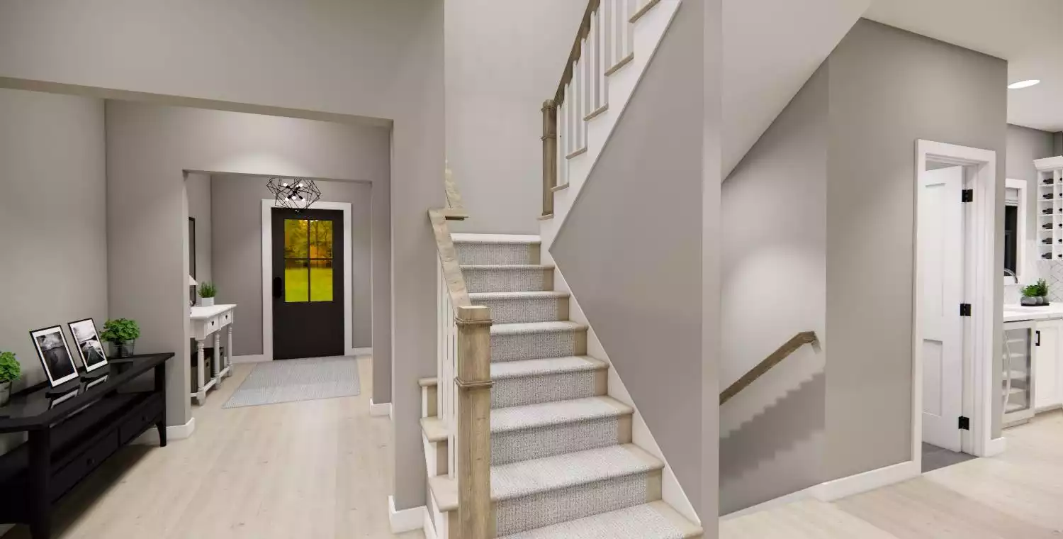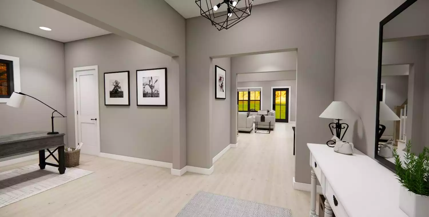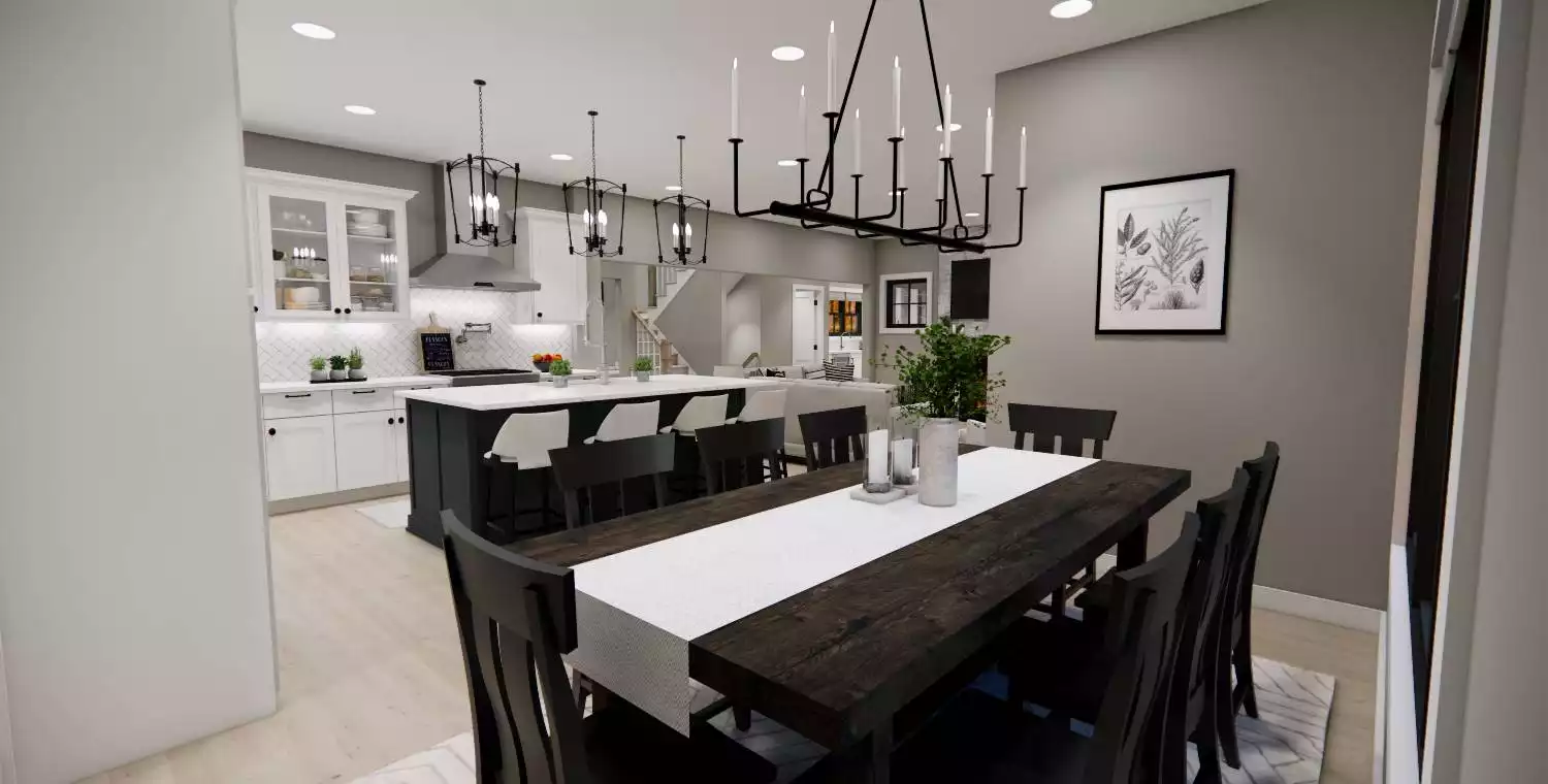 Sandlewood Springs is a 2,748 sq. ft. modern Craftsman home designed for those who appreciate both elegance and functionality. This two-story layout includes 4 spacious bedrooms and 3.5 bathrooms, with a luxurious primary suite on the upper level, featuring a walk-in closet and a spa-like en-suite bath. The main floor’s open-concept design seamlessly connects the great room with a cozy fireplace, a sunlit dining area, and a gourmet kitchen with a large island and walk-in pantry—perfect for gatherings. Thoughtful additions like a home office, stylish wet bar, and practical mudroom enhance everyday convenience. Enjoy outdoor living year-round with covered front and rear porches, creating inviting spaces to unwind. With timeless Craftsman charm and modern amenities, Sandlewood Springs is a perfect blend of warmth, comfort, and practicality for today’s homeowners.