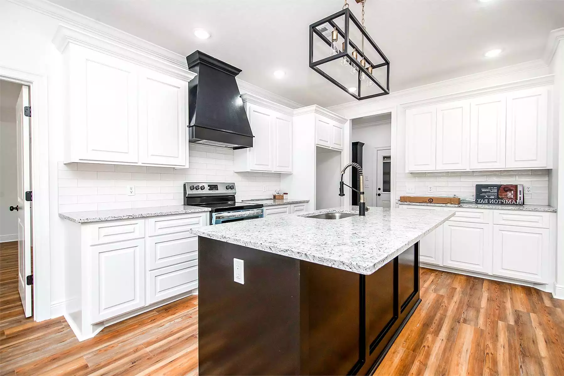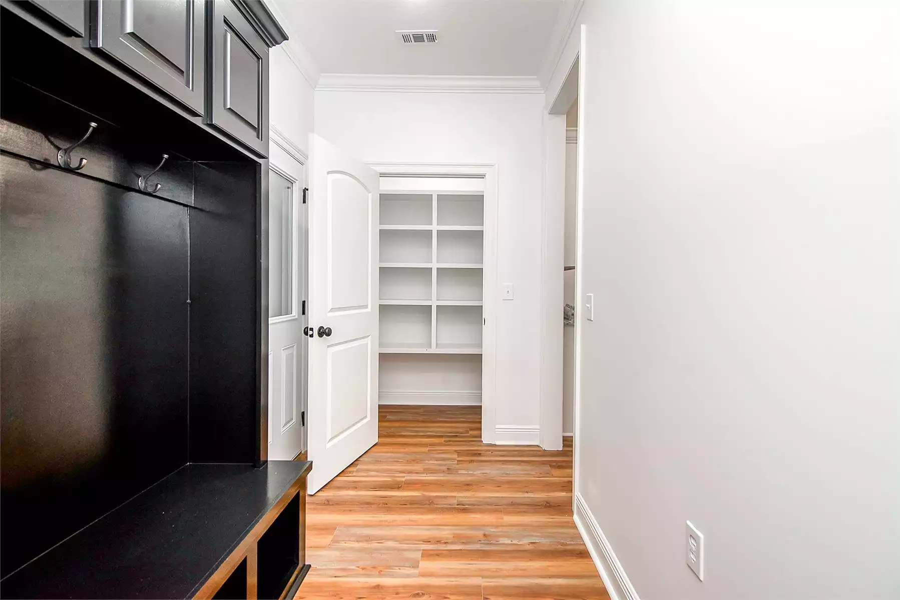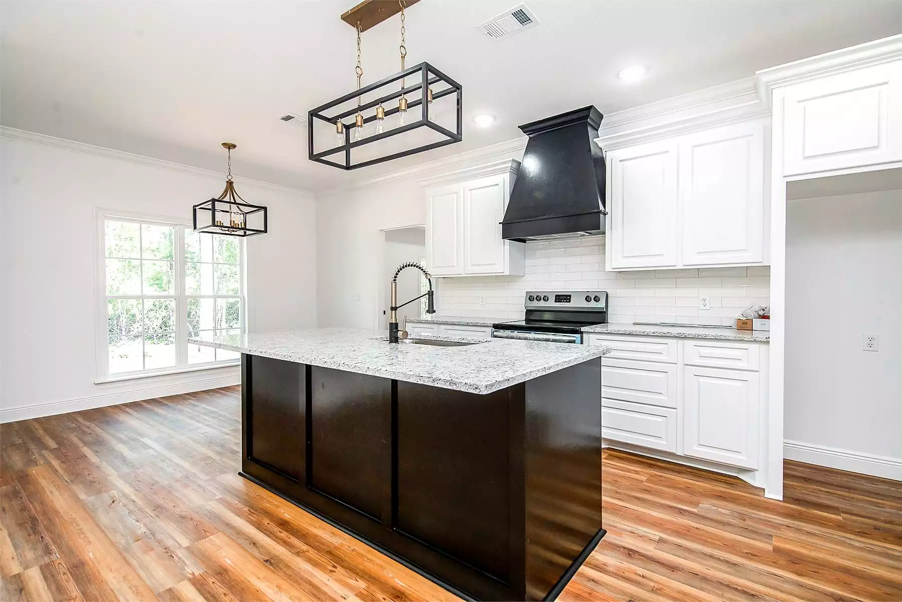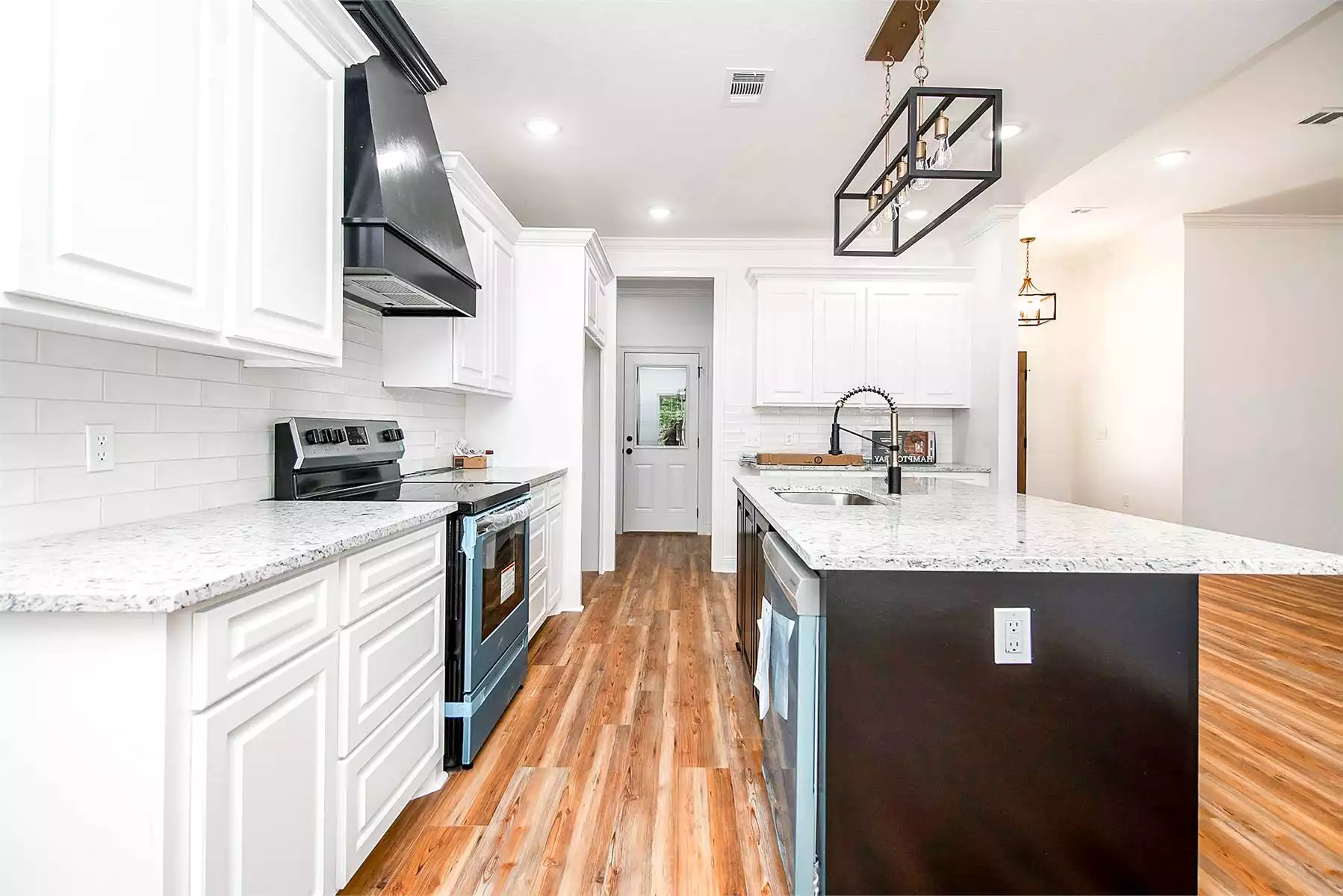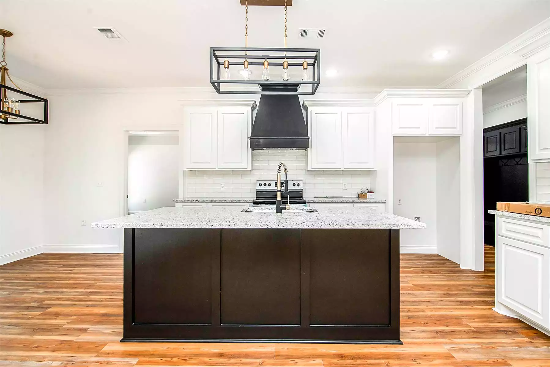 The Harrington house plan is a thoughtfully designed 1,795 sq. ft. modern farmhouse that combines style with functionality. This single-story home offers 4 bedrooms and 2 bathrooms, including a primary suite with a luxurious bath, walk-in closet, and direct access to the laundry room for added convenience. The heart of the home features a spacious great room with a cozy fireplace that flows seamlessly into the kitchen and dining area, creating an open and airy living space. The kitchen boasts a large island with seating, a walk-in pantry, and ample cabinetry, enhancing its practicality. A split-bedroom layout ensures privacy, with three additional bedrooms sharing a well-appointed bathroom on the opposite side of the home. Both front and rear covered porches offer inviting outdoor spaces, perfect for relaxation or entertaining. With its modern farmhouse charm and efficient design, the Harrington plan caters to those seeking a stylish yet functional home.