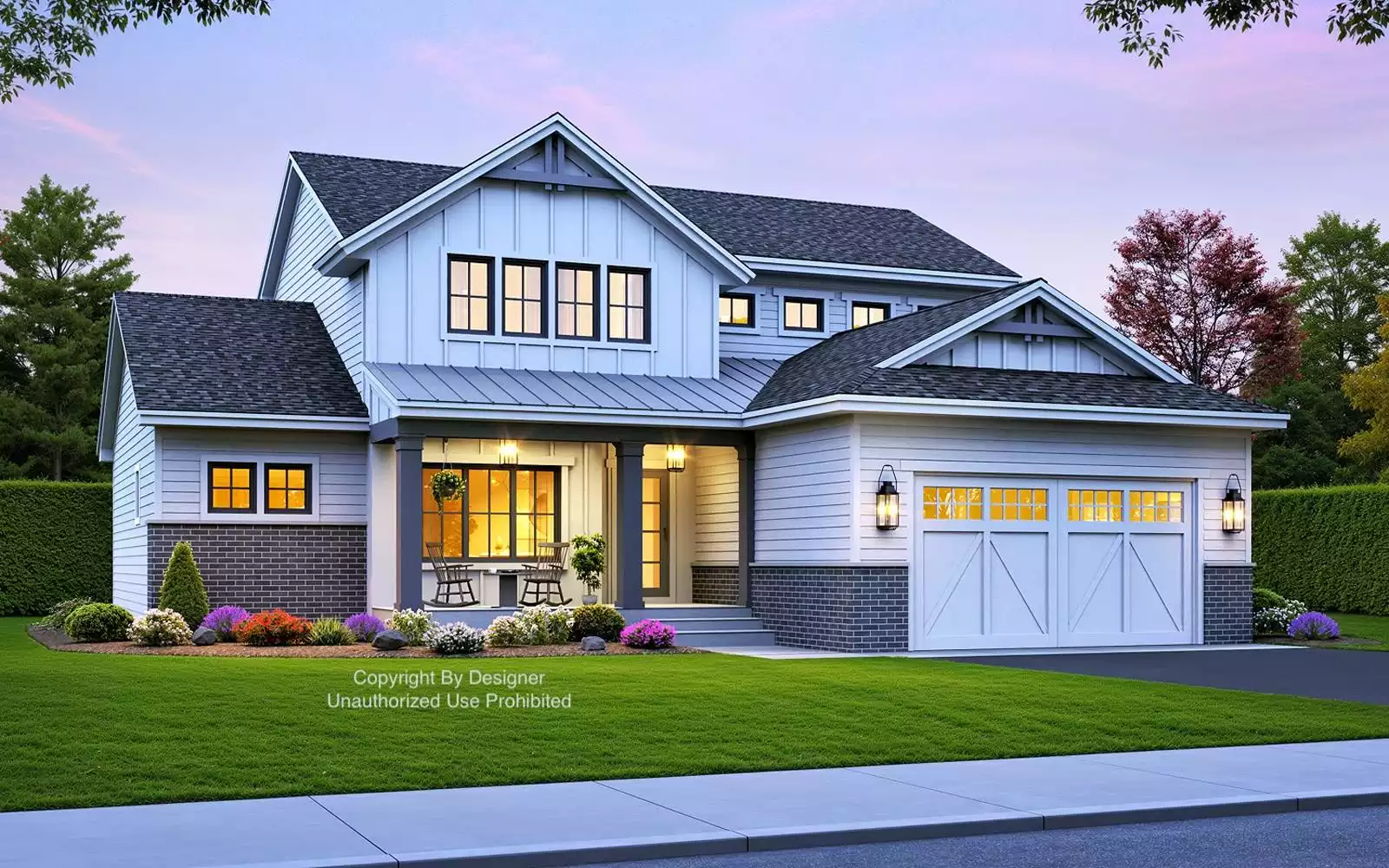 Carlton Place is a beautifully designed 2,500 sq. ft. modern farmhouse that blends style, comfort, and functionality. This two-story home features 4 bedrooms and 3.5 bathrooms, including a main-level primary suite with a spa-like bath and a spacious walk-in closet. The open-concept layout connects the great room with a cozy fireplace, a gourmet kitchen with a large island and walk-in pantry, and a bright dining area that opens to the rear porch, making it ideal for entertaining. Additional highlights include a dedicated home office, a functional mudroom with laundry, and an inviting front porch. Upstairs, three additional bedrooms, a Jack and Jill bath, and a versatile loft provide extra space for family and guests. With covered front and rear porches, House Plan Carlton Place offers the perfect blend of modern design and timeless farmhouse appeal, making it a fantastic choice for families who love open and inviting spaces.