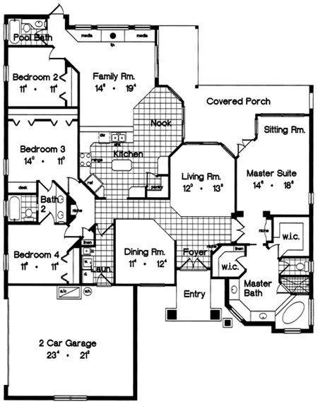 Just off the family space you’ll find a fourth bedroom which shares the pool bath, making it the perfect guest/student suite. Topping off the design is the amply sized utility room, which accesses the side load two card garage.