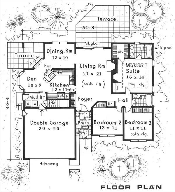 Elegant exterior of this design sets the tone for the luxurious spaces within. The foyer opens to the centrally located living room, which features a 15 ft. cathedral ceiling, a fireplace and access to a lovely backyard terrace. The master suite boasts a romantic fireplace, a built-in desk and walk-in closet.