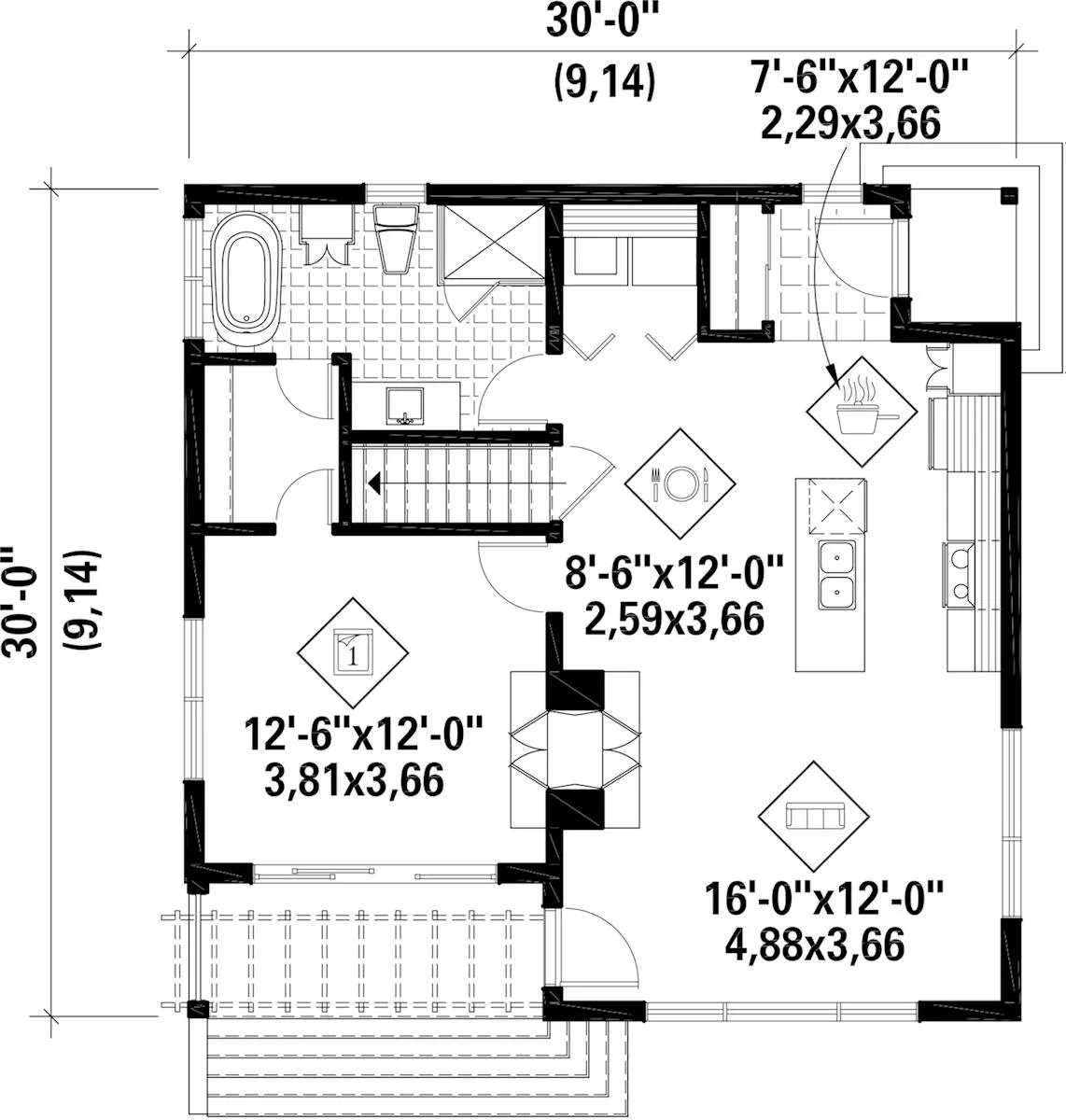 The Getaway 1 Bedroom Contemporary Style House, Plan 9893