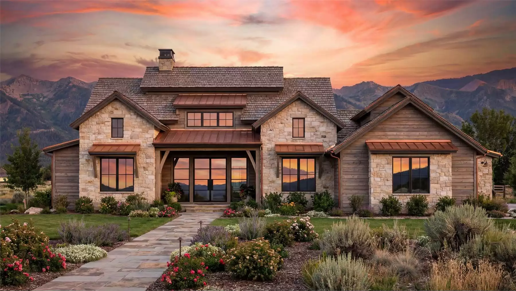 Welcome to Inverness, a stunning farmhouse house plan designed to blend elegance with the natural beauty of its surroundings. Spanning 2,854 square feet, this 4-bedroom, 3.5-bathroom home offers a perfect balance of luxury and comfort. The striking exterior, featuring a blend of stone, wood, and large windows, leads into a vaulted great room filled with natural light. The gourmet kitchen, with a large island and modern appliances, flows seamlessly into the living space, making it ideal for entertaining. The main floor boasts a luxurious primary suite with a spa-like bathroom and a generous walk-in closet, while three additional bedrooms with ensuite baths provide comfort and privacy. Functional spaces include a laundry room, a mudroom, and a two-car garage,. The covered patio offers an outdoor retreat.