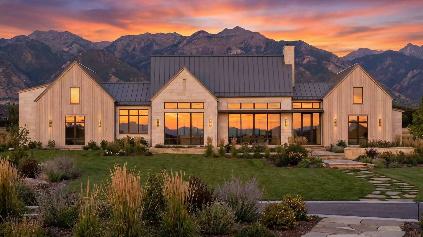 If you have a wider lot and want to make the most of it, consider House Plan 7304! This gorgeous Scandinavian farmhouse design offers 3,759 square feet in a sprawling layout with tons of glass to bring in views. When you first enter, you'll notice that the foyer features a fireplace and connects straight back to the porch for convenience. On the right side of the foyer, there's a bedroom suite and a powder room in the front hall while the primary suite can be found in back, complete with a vaulted bedroom ceiling, a luxe five-piece bath, and a walk-in closet. To the left of the foyer, the open-concept living spaced spread out. The vaulted family room shares the two-sided fireplace while the island kitchen is open to the dining area adjacent. Head down the hall toward the garages and you'll pass the walk-in pantry and laundry room before you make it to the family foyer with built-ins. The two-car garage and one-car garage/gym flank this handy drop zone. Continue all the way through to the stairs and head up to find the final two bedroom suites and a loft on the second story. This layout makes the most of its space and offers exceptional privacy!