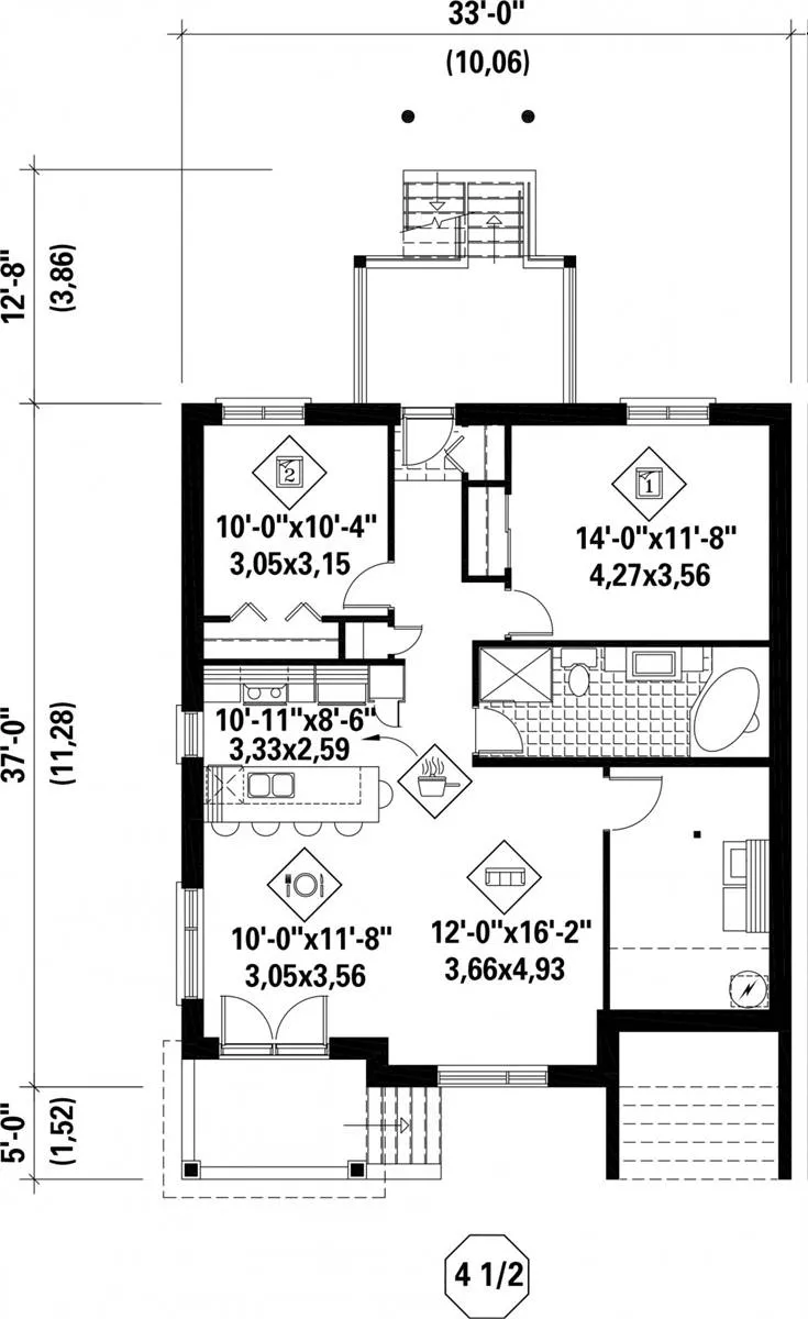 Private luxury is the focus throughout this contemporary multi-family plan. Beyond the beautiful exterior and its simple yet stylish features, this home offers 3 separate units, each with a comfortable 1,178 square feet. Accessible either via the front or back staircase, each home within this triplex is situated on its own private floor. Beyond the privacy that this triplex provides, you’ll also enjoy the amenities within each unit, including 2 large bedrooms and even your own full spa bath with separate tub and shower! On top of that, every home has a large eat-in peninsula kitchen, as well as a cozy living room. For an added bonus, each level has a private balcony, perfect for enjoying a relaxing sunset after a long day. The convenience and cost-saving that a multi-family home provides is not to be outdone by the comfort that each unit in this plan offers.