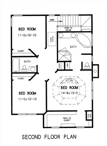 This home plan takes the open plan concept to a new level. The kitchen is generously sized and the sink overlooks a wrap around snack bar. Bedrooms are all upstairs with the master having an elegant flair, accented by an octagonal tray ceiling.