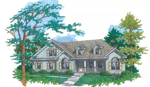 A warm rural feel is created by the covered porch. Features long favored in the south are a highlight of this plan. Tall ceilings give spacious impressions and attic storage is accessible from a full stair not a pull down. The bedroom behind the garage could be an in home office.