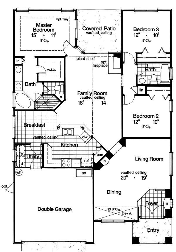 All of the negatives of a narrow house have been overcome in this ingenious design. All entrances to major spaces of this home are at an angle to give a feeling of spaciousness.