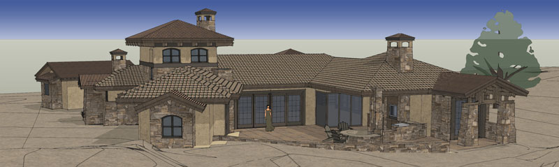 Stucco and repeated arches lend a Spanish feel to this sprawling one-story design. Three master suites occupy different corners of the floor plan. A great room serves as the primary gathering place. A tower room is located above a useful office. The family chef will appreciate how the kitchen is situated for easy service of any snacks and meals. The large laundry room includes plenty of counter space.