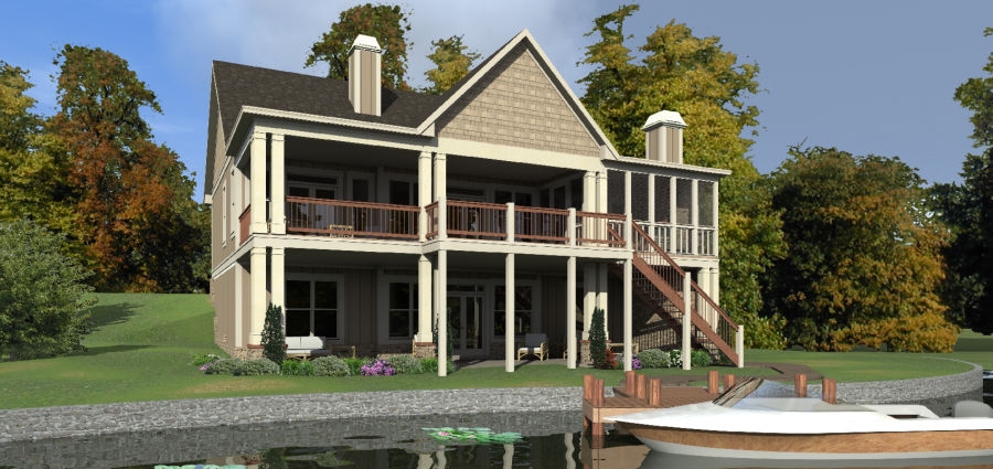 This is a traditional beach craftsman house plan. It has four bedrooms and four bathrooms. It features an open floor plan with 2,805 square feet of living space. The master features great his and her closets. This home has storage, a game room, and a daylight basement. The kitchen has an island and walk-in pantry. The exterior has a screened porch both front and rear are covered.