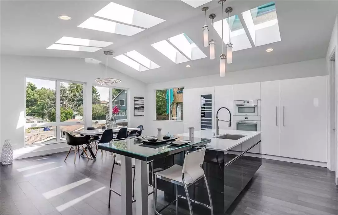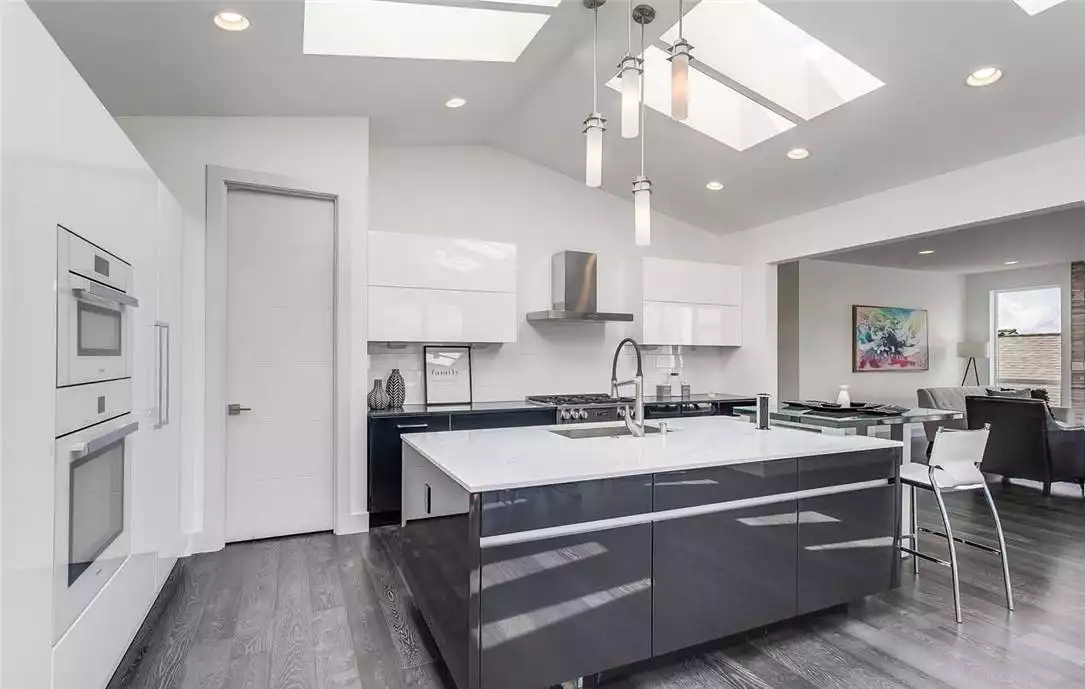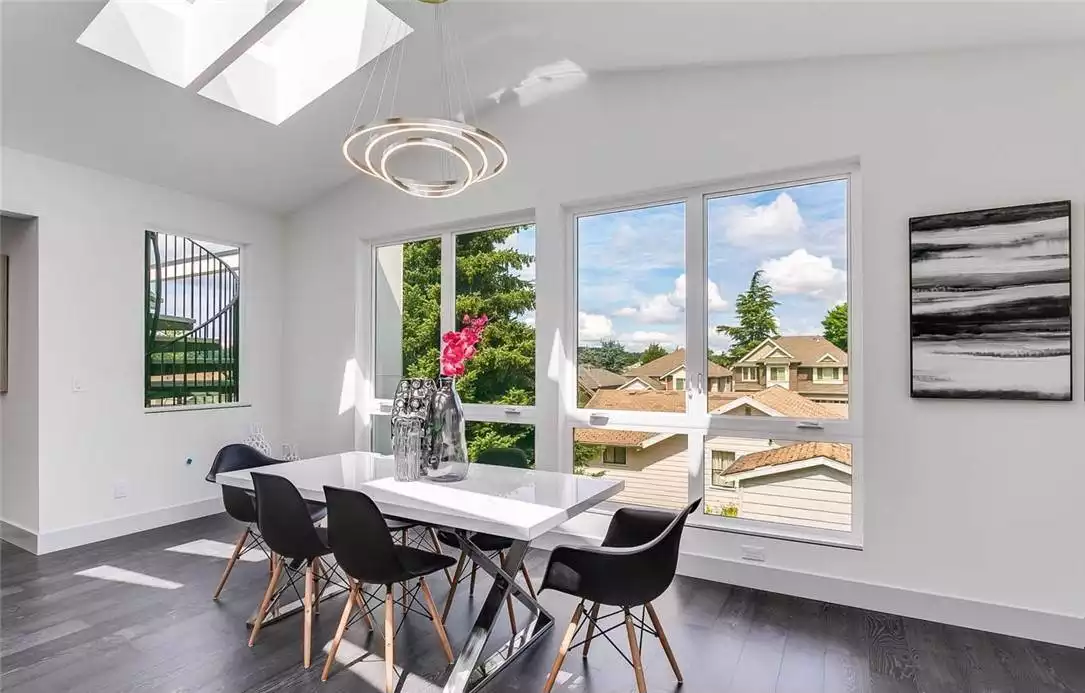 Perhaps one of the most uniquely designed homes that you've ever seen, this 4 bed 3 bath modern masterpiece is a wonderfully stylish family plan. Providing 3,543 square feet amongst 2 floors, you'll notice that every space of this home has been designed with luxury in mind, starting with its reverse-layout floor plan. This means that the ground floor has a 3-car garage and 3 bedrooms, while the second floor has all of your main living spaces as well as the master suite. This layout was specifically designed to take advantage of the beautifully large windows found throughout this home, flooding it with warm natural light and great views all year long! Take note of  other great features such as the gourmet island kitchen and the fully-stocked master suite, complete  with a large walk-in closet!