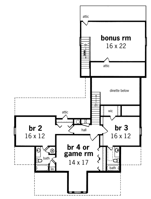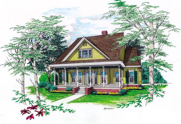 The wrap-a-round porch creates a warm and inviting look to this farmhouse design. The main stairwell is positioned to allow kids access to the outside entry or the breakfast table without disturbing the main living areas. A bonus room above the garage is accessible by a rear stairwell. The garage has abundant storage, a workbench and a closet for storage of unsightly items like garbage containers.