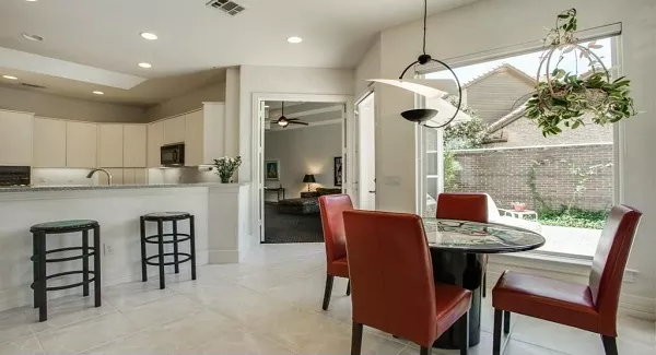 is the atrium, with access to the backyard and where windows allow the light to stream through. At