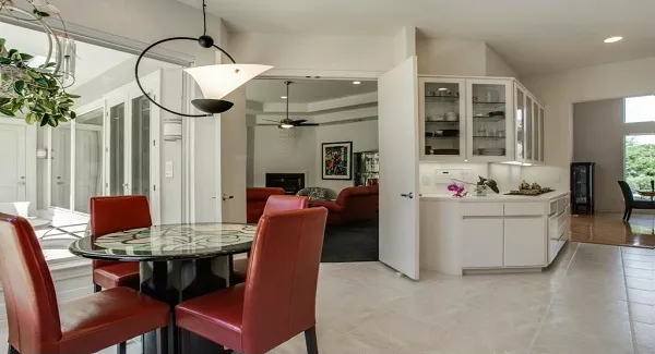 kitchen for ease in serving family and guest dinners. Continuing through the gallery you approach