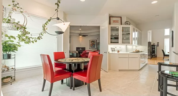 island, a pantry, and an eating bar that seamlessly separates the kitchen from the breakfast area.