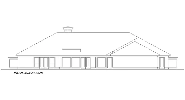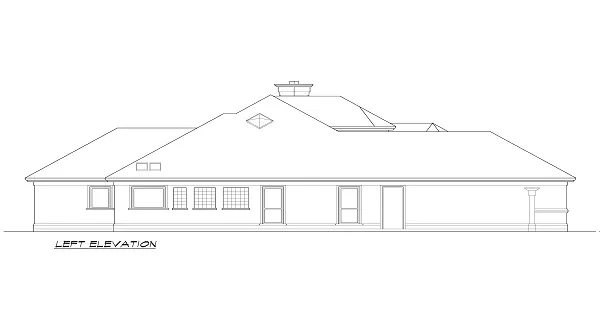 jets out from the right with large rectangular windows above side-by-side verticals and rectangulars