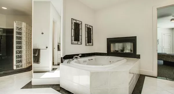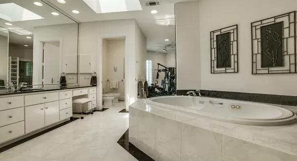 room. The hers bath has a luxurious marble surround Jet tub, vanity, large wardrobe with built-