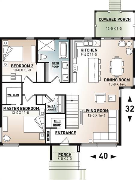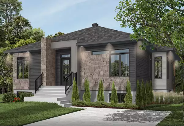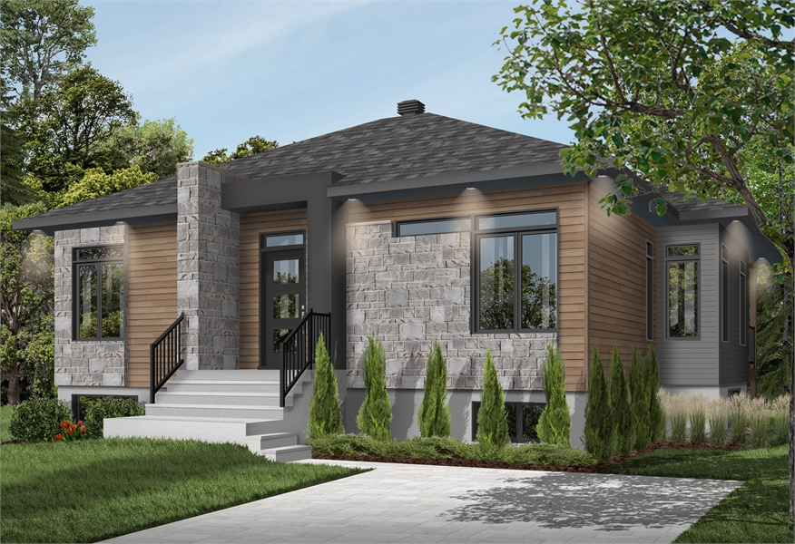 A comfortable home with a reduced footprint, this 1,207 square foot contemporary bungalow can be built on just about any lot. A value-engineered design results in this 2 bedroom 1 bathroom home taking up minimal space, with maximum enjoyment. A sleek exterior opens on to the foyer and mudroom, while the open concept design creates an immediate flow. The nearby living room connects with the dining room and large island kitchen, with access to the covered rear porch right around the corner. Two bedrooms share a large full bath, complete with dual vanities. The master bedroom even has its own walk-in closet, a great feature in a smaller home! For added storage and function, this home provides a stand-up basement, accessible via a staircase off of the kitchen so your home won’t feel cramped and you can keep all of your memories in one place.
