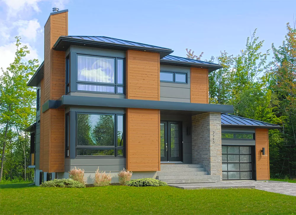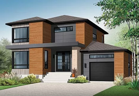 A modifiable work of modern architecture, this stunning contemporary style plan utilizes strong contrasts and sharp geometric lines to provide a home like no other. Once inside past the covered front porch and deep attached garage, this 1,852 square foot home offers modern amenities at every turn. 3 bedrooms and 1.5 bathrooms offer plenty of living space for a family, while features such as the large open kitchen and open living room and dining room, enhance the experience of this home. A secondary seating area as well as an office nook attached to the kitchen makes it easy to supervise homework or school projects while cooking dinner for the family. The second level of this plan houses all 3 bedrooms as well as a shared full bathroom. Second-floor laundry makes chores easy and convenient, while spacious walk-in closets ensure ample storage throughout the home.  Stunning windows are found on virtually every wall of this home, creating an array of views and natural lighting that highlights the modern masterpiece that is this plan.