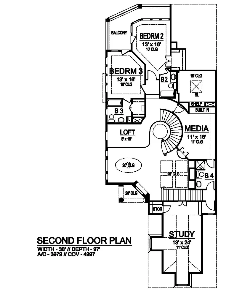 This Mediterranean luxury house plan will have you shocked as you enter the 20' high foyer that opens to the two story dining and living rooms. As you pass the centrally located staircase through the barrel vaulted ceiling, you'll end up in the open living areas that are comprised of the kitchen, breakfast and family rooms which are broken up by large decorative pillars and a peninsula bar. A two-way fireplace is shared by the family room and master suite and will warm the family gathering area during the cold winter months. The master has many features that include a large sitting area, and a luxurious bathroom with his and hers vanity sinks and a large wardrobe. Rounding out the first floor is a three car garage and the utility room that has easy access to the master suites wardrobe. The second floor houses two family bedrooms with full bathrooms and walk-in closets. The second floor is also complete with a loft that has stunning views of the first floor down below, as well as a media room, a study and plenty of built-ins.