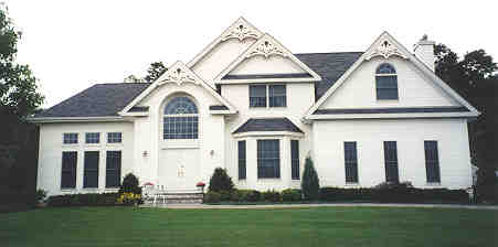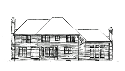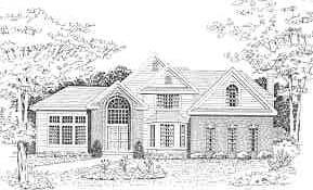 Island kitchen features serving bar and opens to breakfast room; family room boasts fireplace. Master suite has private bath with two walk-in closets, dual-sink vanity and whirlpool tub. Blueprints for this home include details for chimney on left side of home.