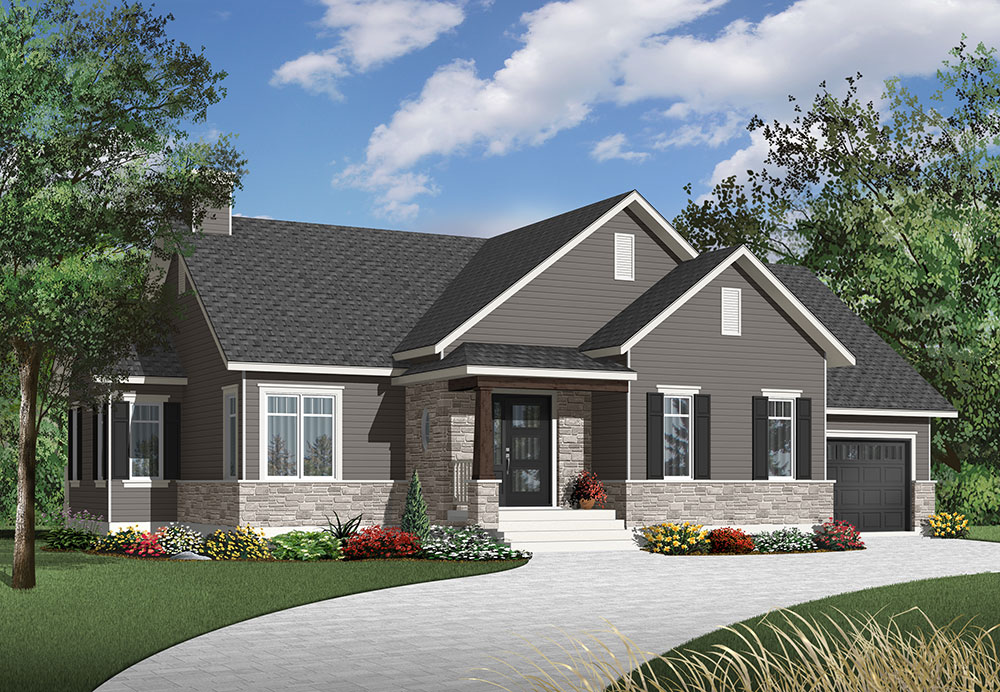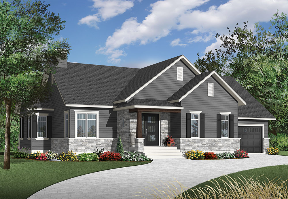 Craftsman ranch house plan with open floor plan concept. Another wonderful feature of this plan is the abundant storage space and kitchen island. There is a practical, double vanity in a bathroom that boasts a separate, corner tub an a 3' x 6' shower enclosure.
