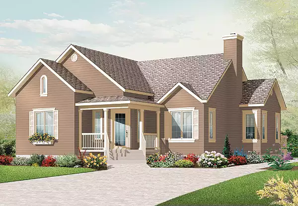 For the discerning customer, a unique angled main entrance; abundant windowing, eye-catching gables and porch speak to the charm of this bungalow. Bench space and a corner closet utilize the entry space efficiently. Next, we discover a beautiful family room with basement staircase next to it gives this area a more open look. The kitchen boasts plenty of storage, an island with eating bar, and a beautifully windowed dining area. The master bedroom includes a walk-in closet, amazing for a home of this compact size. It and two secondary bedrooms are arranged for convenient access to the family bathroom and laundry. The basement can be developed for further living space or used for storage.
