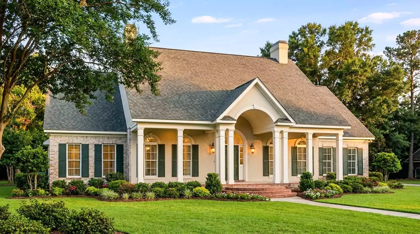 Picturesque symmetry accompanied by a well-designed floor plan makes this one-story plan a popular choice. A sitting area that leads to the covered rear porch enhances the luxurious master suite. The kitchen is spacious and offers abundant storage, and an island with snack bar. The upper floor has an additional 1000 square feet for future expansion.