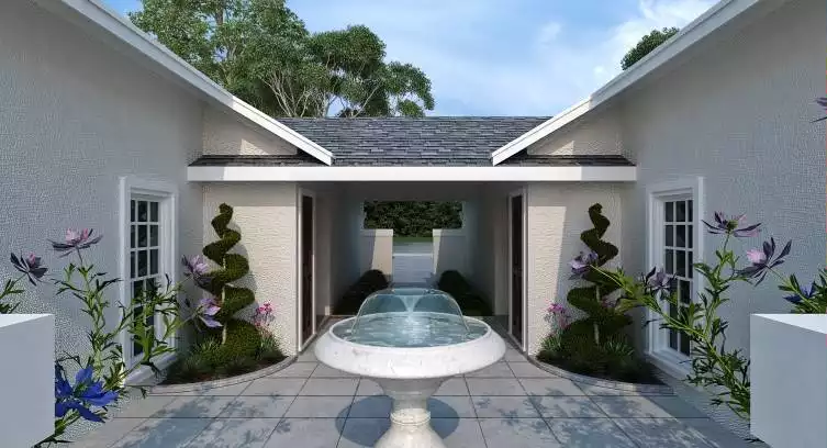 The design of this duplex plan offers a great solution for those seeking a home for themselves plus rental income live in one unit and rent out the other. They also make great retirement homes or the perfect solution for those who are attending to elderly parents. The exterior is especially designed to create the look of a single-family home. The central courtyard makes an impressive focal point of entry while the covered rear porches provide a private outdoor living space. The living room is bright and open to the kitchen and dining and includes a wood burning fireplace and sloped beamed ceiling. A walk-in master closet, twin secondary bedroom closets, an entry closet and a built in kitchen pantry provides abundant storage. A separate garage plan is available as an option.