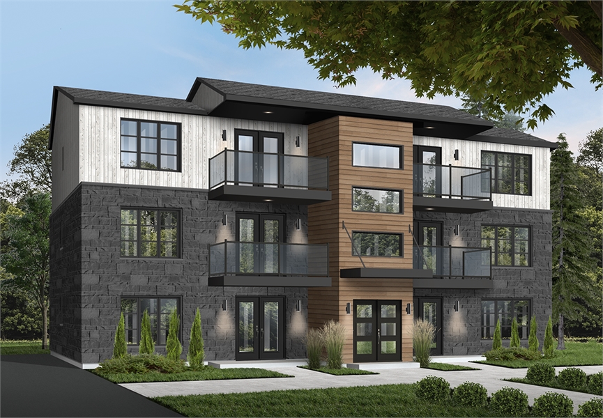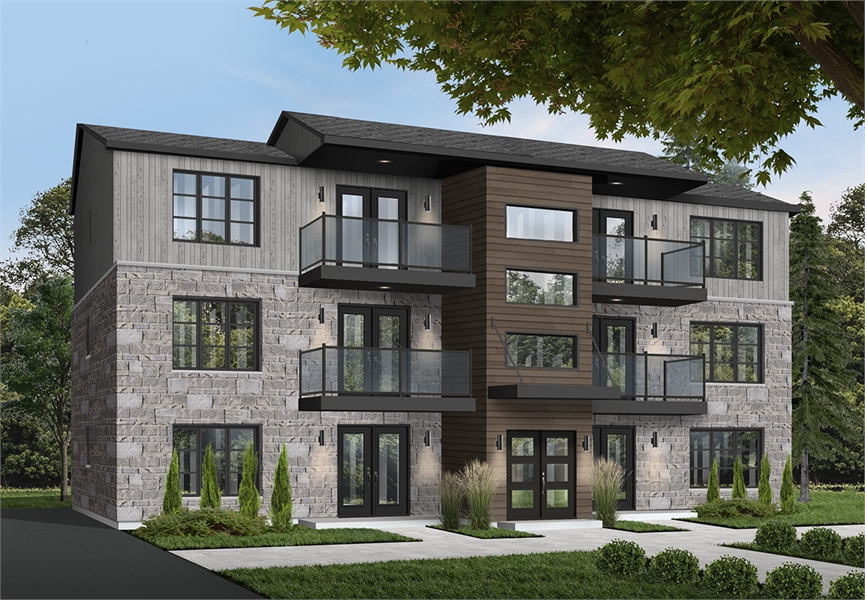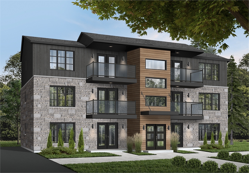 Welcome to this impressive 3 story, 2 bedroom contemporary 6-plex featuring 900 square feet per unit.  Each unit boasts two comfortable bedrooms with a shared bath, nice kitchen and living/dining area.  This structure is perfect for the builder who wants to build upscale multi-family homes that will fit right in the neighborhood.  Each unit is identical or a flipped version and is large enough for a roommate or small family.  All units include either a balcony or patio to allow for some exterior living.  The stone and glass exterior gives it a contemporary yet rustic feel.  This home is guaranteed to please.
