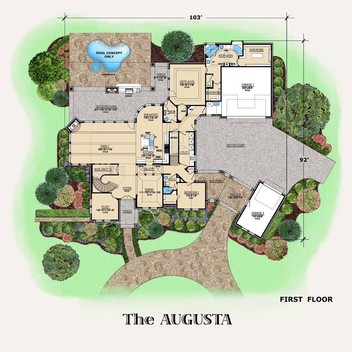 Large and impressive, this European-inspired two-story is sure to draw compliments. Inside, the sprawling family room will be the central gathering place, warmed by a corner fireplace. The gourmet kitchen serves formal or casual meals in style. The peaceful master suite boasts a surprising list of amenities. Note the study or home office, nicely situated to provide views of arriving clients. More bedroom suites are found upstairs, along with spaces for entertainment and expansion.
