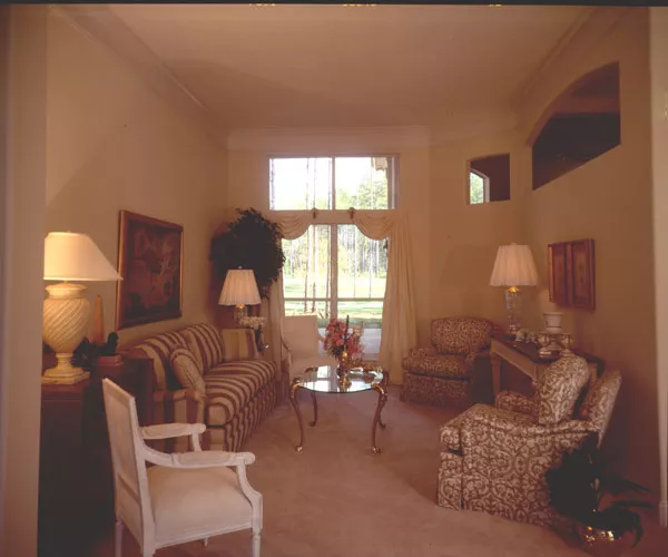 The living room has a spectacular view of the huge covered patio area that’s perfect for summer entertaining.