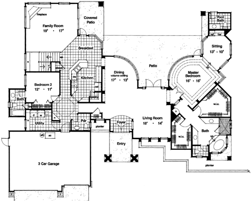 Living/dining spaces embrace each other to share spectacular view of pool. Master suite with raised sitting area complete with bar shares view of the rear yard as does the architectural bed wall capped by a triple stepped ceiling treatment, and a mitered bow window. The master bath is lavish, and is split with private vanities, and huge walk in closets. The kitchen, nook, and family room makes family living a first priority. A guest suite, formal powder room, and doors to utility and garage share an octagonal center hall. Two bedrooms share a balcony, a soaking tub in the bath, along with a private gathering space. Classical lines reminscent for Frank LLoyd Wright designs are reflected in the brick/stucco elevation.