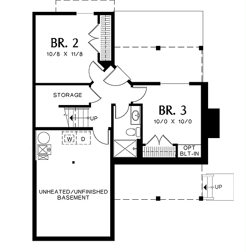 The two lower-level bedrooms have ample closets (Bedroom 3 has an optional built-in) and share a full bath. The lower-level hall opens to a covered patio outside. Note the storage area under the stairwell.