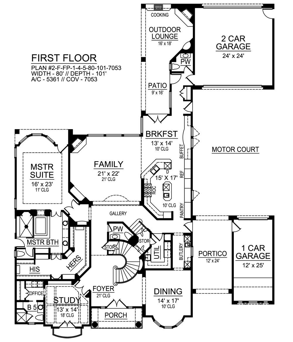 This Mediterranean house plan offers something for everyone with such amenities as a 21 foot ceiling in