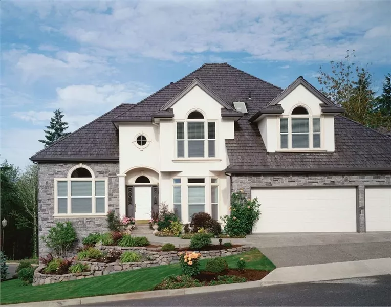 Sleeping quarters are secluded on the upper floor. The master suite is a dream come true. The bedroom has a decorative tray ceiling and is large enough for both sleeping and sitting areas. The private bath hosts a whirlpool tub and a walk-in shower. The optional bonus room extends across the garage. It's an ideal location for a playroom, a hobby room, a guest room, or a home office.