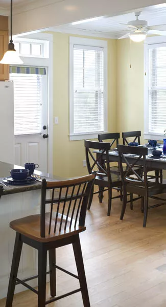 This three-bedroom classic adds a covered, second level balcony off the master bedroom. A back covered porch and a lovely eating nook continue to make wonderful use of space while also encouraging the homes flow and livability. Modern updates in the kitchen and a fantastic use of materials instill this home with the character and architectural design of a much statelier property. In addition, youll find smartly designed elements, including three spacious bedrooms, double-hung windows and a fireplace in the living and dining area.