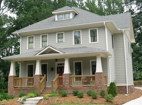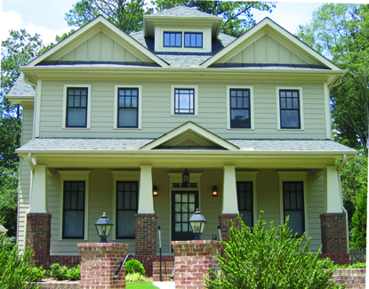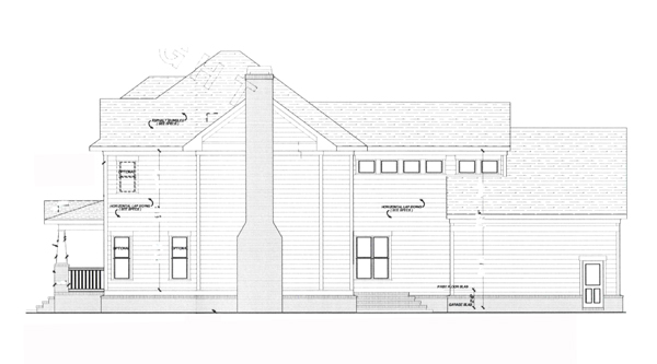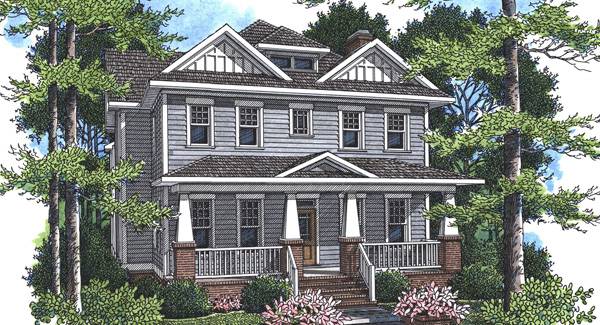 This two story, narrow lot home design captures Turn of the 20th Century charm without sacrificing anything today's homeowner expects. The openness of the rear of the house helps bring the outside indoors despite a limited lot size. The rear staircase opens to a computer station outside the guest bedroom and is lit by a series of transom windows flooding the upper hall with light while preserving privacy.