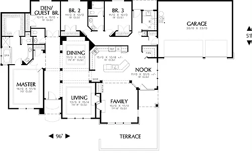 Reverse house plans with readable text and dimensions