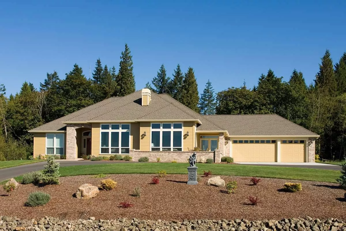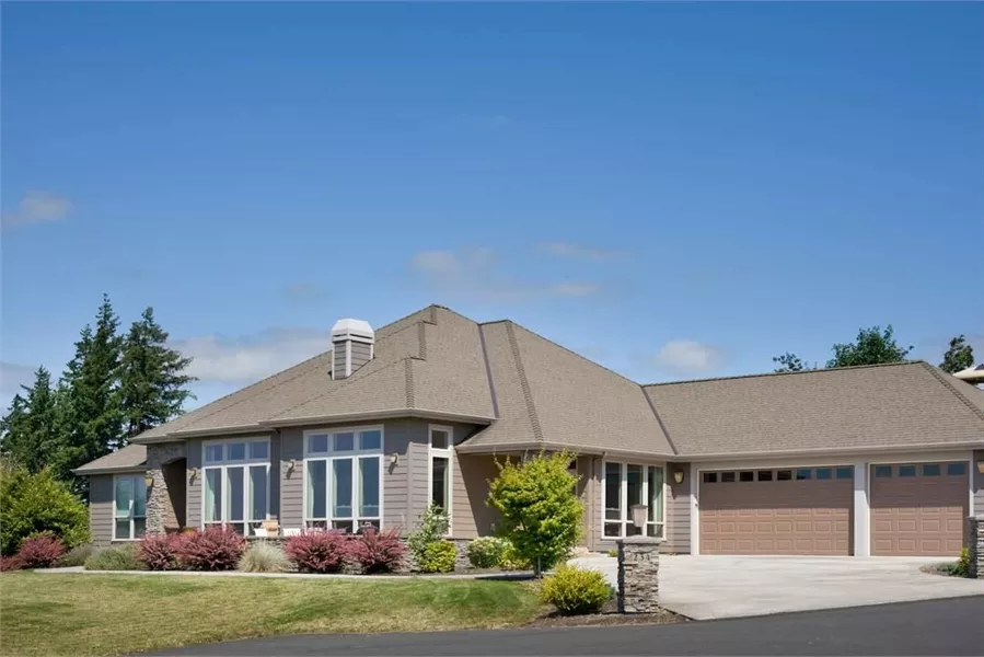 Speaking volumes of graciousness, this design makes its mark with multi-paned windows with transoms, a high chimney stack and a varied roofline. The floor plan is nothing if not commodious and puts all of its living spaces right up front. Formal living and dining rooms open through decorative columns directly from the entry hall. The living room has a fireplace and the dining room contains space for a hutch. Both spaces have tray ceilings. The family room shares a large open area with the island kitchen and the breakfast nook. It also has a fireplace and a built-in space for an entertainment center. A walk-in pantry offers abundant storage for the kitchen. Family and guest bedrooms line the back of the plan, leaving the master suite to occupy the entire left wing. A spa tub and walk-in closet make the master bath extra special. A three-car garage holds all the family vehicles.