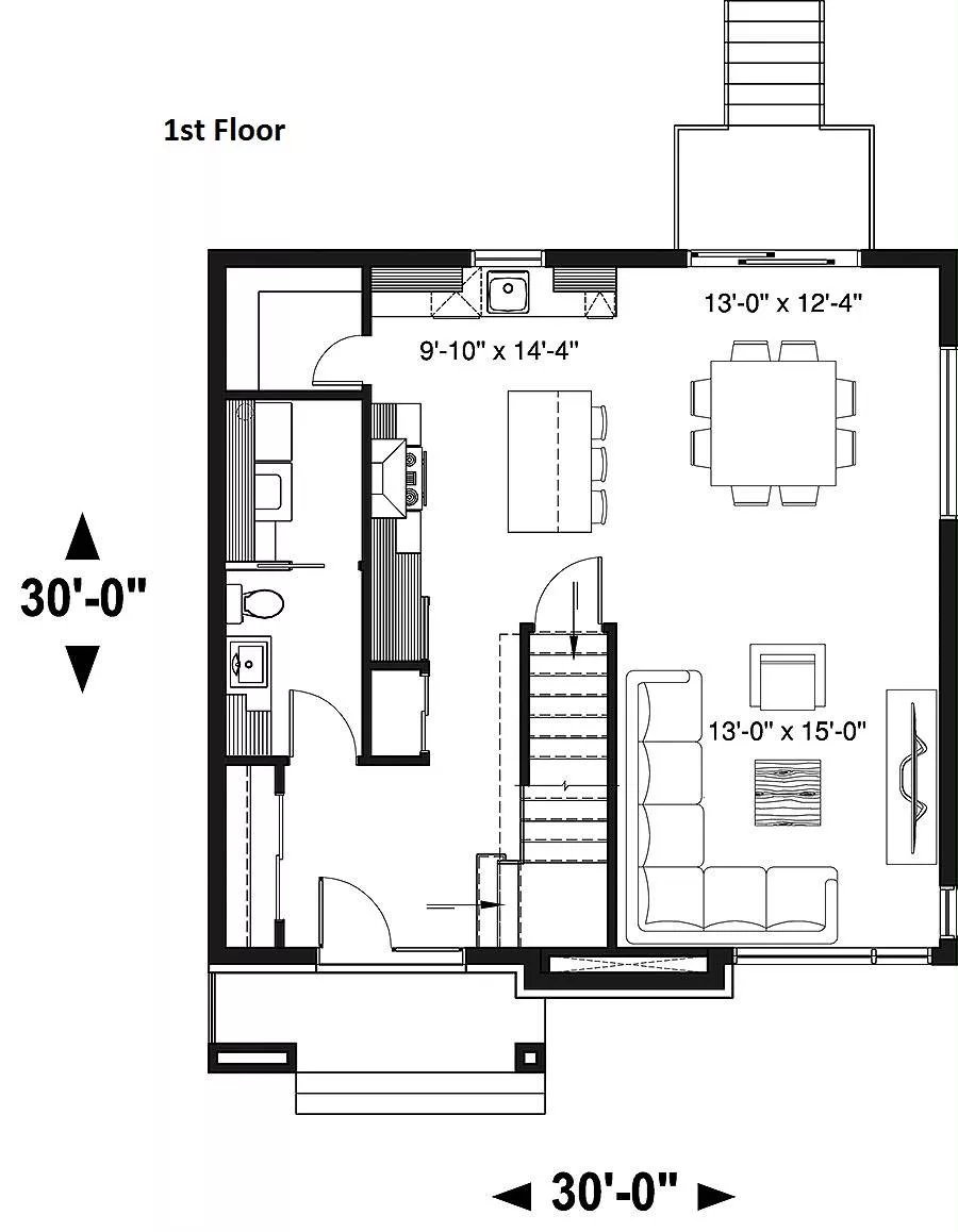 With a nice unfinished basement, this 1,739 square foot, 3-bedroom, 1.5 square foot house plan offers a lot of space for that growing family. Trendy modern style two-story home. Warm front exterior with stone and wood finishes. Spacious entrance with walk-in coat closet and exterior lateral access. Access to laundry room through half-bath. Large kitchen with central island and large walk-in. Open concept dining and living room. Good size master bedroom with walk-in closet. Two secondary bedroom with walk-in closets. Large family bathroom with 2 sinks, 54'' x 36'' shower stall, podium bath and linen closet nearby.