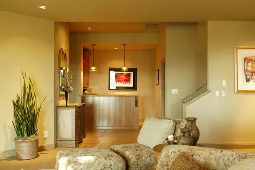 Additional bedrooms are found on the lower level, where there is also a games room, wine cellar and wet bar. All three lower-level bedrooms have walk-in closets. Bedroom 2 has a private bath. The two-car garage, which features space for a workbench, sits above a large storage space.