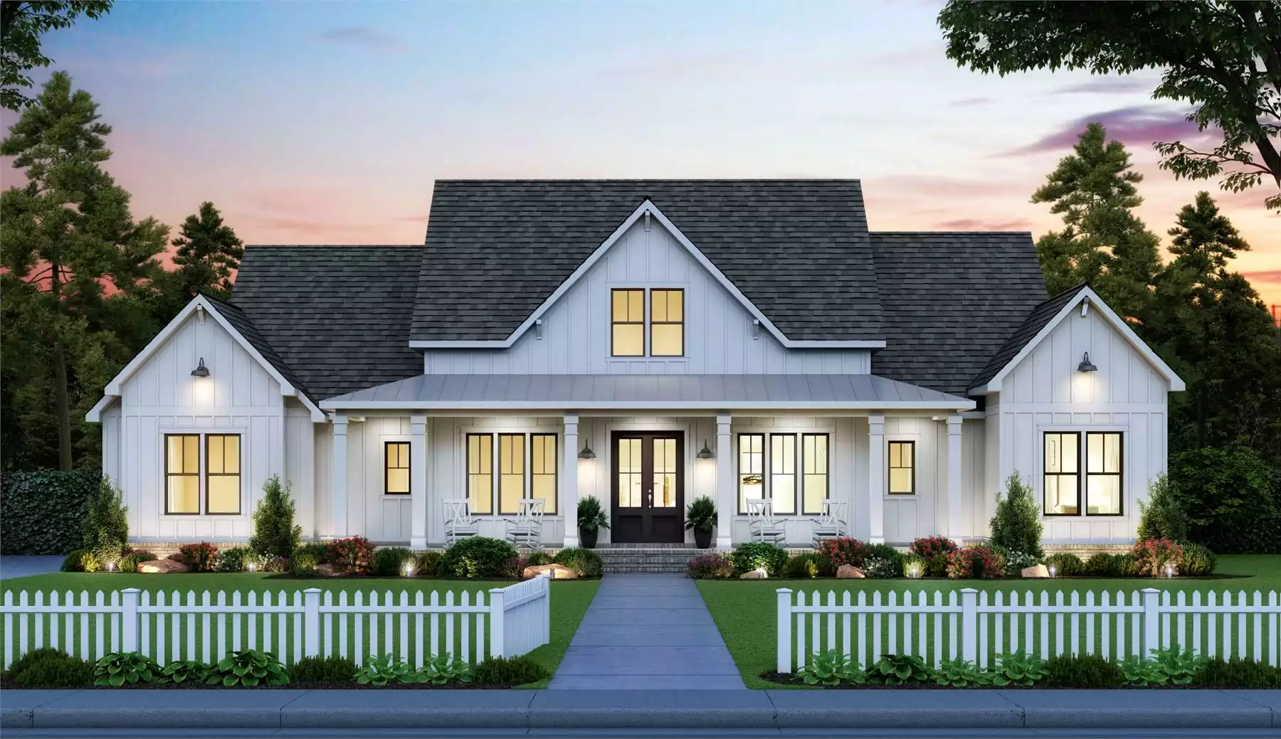 Southern charm overflows from this beautifully inviting country farmhouse. A ranch-style layout makes for a totally accessible and open 2,400 square feet of living space, while 4 bedrooms are perfect for a new or growing family. A sister plan, THD-1062, is slightly bigger at 2,841 square feet and includes a 3D tour, so you can get a feel for this layout! Our Black Creek farmhouse plan's best feature is its open concept design that joins a vaulted great room with an impressive kitchen with center island and walk-in pantry, and formal dining area. Notice how every bedroom has a walk-in closet, including the master which also offers cathedral ceilings and a spacious en-suite bath. The large covered rear porch with 10' ceiling, optional wood burning fireplace and outdoor kitchen is perfect to gather friends and family. Last, a 3-car garage with a separate entry door completes this affordable and beautiful home.