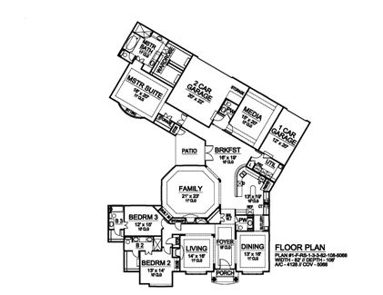 This luxury house plan design opens to a welcoming Foyer. An elegant dining room and formal living room surround the foyer, while two family bedrooms with private baths and walk-in closets also share this portion of the home. The large octagonal family room, with its warming fireplace and built-ins is the center of this home and open to the breakfast room and kitchen. The kitchen features a walk-in pantry, center island, separate oven and cook top, and butler's pantry. The private master suite offers a luxurious bath with his and hers vanities and huge wardrobe.
