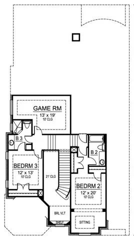 This luxury house plan is perfect for a narrow lot. Inside the foyer is a curved staircase that leads up to two family bedrooms with full baths. The large game room is a great hangout place for the kids! The foyer views the serene study through its French doors, next to the elegant dining room with tray ceiling. The kitchen is functional and makes serving both the breakfast nook and dining room masterfully efficient. The family room features a 15-ft. vaulted ceiling, a warming fireplace and built-ins. The master suite boasts a lavish bath with his and hers vanities, a barrel-vaulted ceiling, and a huge walk-in wardrobe.